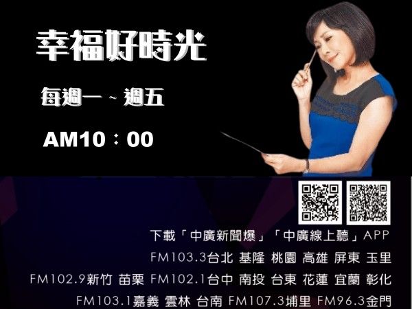 每週一至五,上午十點至十一點,記得收聽中廣流行網「幸福好時光」,要幸福喔!!