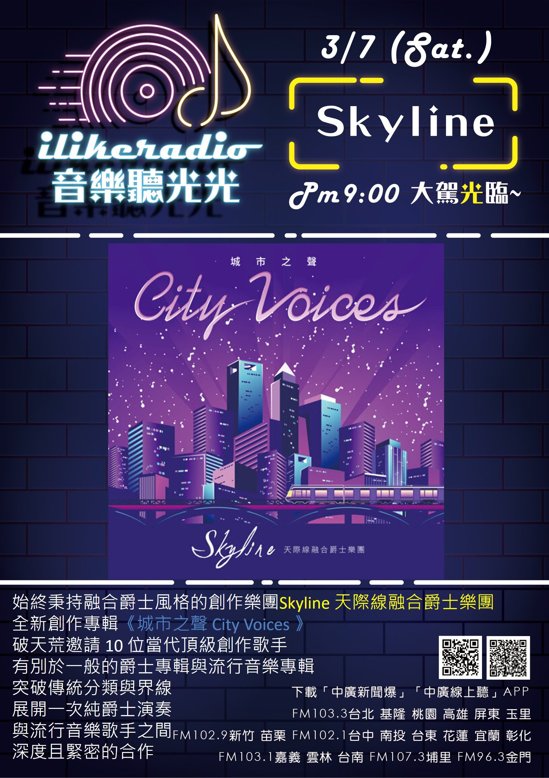3/7 (21:00) 音樂聽光光:Skyline天際線融合爵士樂團